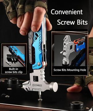 - ?18 in 1 Multifunctional Tool?This multitool is equipped with 18 different functions, including an adjustable wrench, hammer, nail puller, wrench, screwdrivers (PH1, SL4.5, PH2), wire cutter, regular plier, needle nose plier, magnesium rod, safety whistle, bottle opener, can opener, threader, knife, saw, screwdriver hole, and screwdriver storage. With this versatile tool, you will be well-prepared for any task or emergency situation